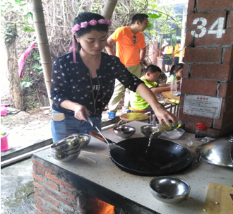 一起分享集體協(xié)作的成果,雞,魚,蝦,排骨等等,對(duì)了,還有餃子,像魔法一樣呈現(xiàn)在大家面前,話不多說(shuō),趕緊大快朵頤,下午還有更精彩的行程等著我們!