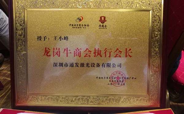 深圳市龍崗牛商會(huì)執(zhí)行會(huì)長,深圳市通發(fā)激光設(shè)備有限公司副董事長王小峰從深圳上千企業(yè)家中脫穎而出,同其他九位優(yōu)秀企業(yè)家共同獲得了第九屆深圳十大牛商的殊榮。